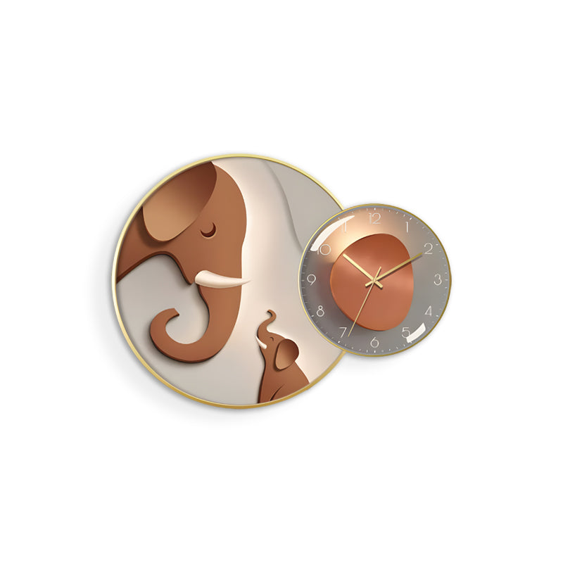 Add a touch of quiet strength and modern flair to your décor with this elegant wall set, featuring a round painting of a brown elephant set against a soft white-grey background, paired with a round wall clock in bold orange and grey tones. This artful pairing blends the calm presence of nature with a contemporary pop of color.