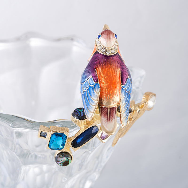 Add a touch of charm and sophistication to your décor with this exquisite clear glass vase, crowned with a beautifully detailed bird ornament. The decorative bird features vibrant blue and red hues, highlighted with delicate gold accents that bring warmth and elegance to the piece. Perfect as a standalone centerpiece or paired with fresh or dried florals, this vase combines artistic flair with timeless design. Ideal for living rooms, entryways, or as a unique gift for bird and nature lovers. A stunning accent for any room or occasion. Suitable for decorative or floral use.